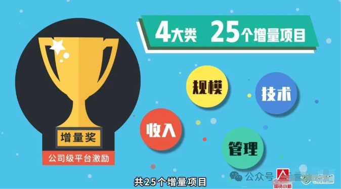 2023年,中国移动的一个分公司设立了公司级平台激励“增量奖”,该奖项包含25个增量项目,这些项目涉及收入、规模、技术、管理这四类,它不仅覆盖了业务的各个方面,还体现了公司对不同贡献类型的重视,并且针对专利、安全反诈、云原生技术等科技创新项目,还设置了专项激励来鼓励创新。