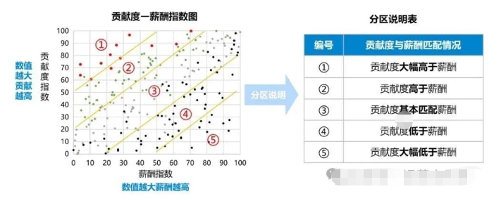 在年度调薪这件事上,中国移动的某分公司设立了特别调薪档,为优秀人才提供加速调薪的机会。该公司创新运用了“薪酬—贡献度指数图”这一工具,能直观地呈现出员工贡献度与薪酬水平之间的关系。经过近两年的改革,薪酬与贡献度的匹配状况得到了改善,“能增能减”的理念也深入人心。比如说,员工能够看到自己的努力与薪酬是挂钩的,这使得他们工作起来更有动力。