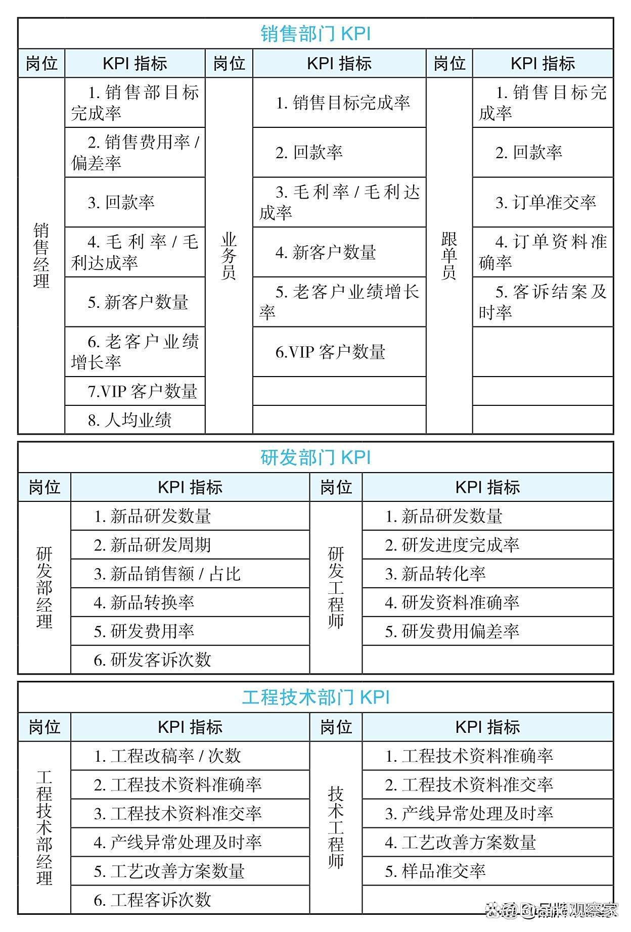 70年代,奥布里丹尼尔斯提出了“绩效管理”这一理念,随后诞生了kpi。KPI是一种衡量管理成效的量化指标,它通过分析组织流程中的关键数据来评估绩效。这种指标通常用于评估员工的工作表现。以销售岗位为例,其KPI可能包括销售额和客户数量等。
