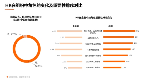 企业的人力资源部门,在组织方面所具备的影响力,成功实现了实质性的拓展,96.23%的HR都表示,自己在企业里于角色扮演这方面的重要性,显著得到了提升,而且这种变化,在最近的十年时间里,显得尤为突出,企业的决策层,渐渐认识到了人力资源对于组织发展所拥有的战略价值,进而把它纳入到重点关键的决策体系当中 。
