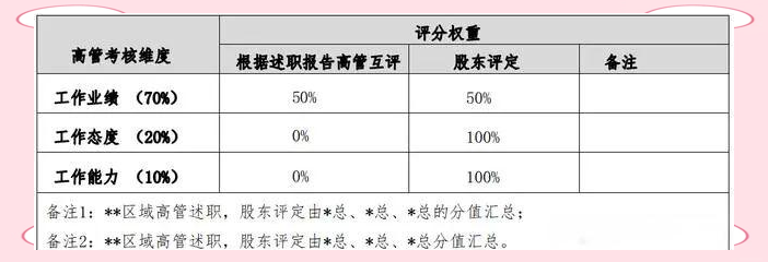 出于确保评价具备客观性的目的,进行了评分方面具体权重分配的设置,不同评价维度以及评价主体(像是上级、同级、下级等等)所对应的分数,会依据预先设定的比例予以整合,最终以量化的形式对高管绩效展开综合呈现。