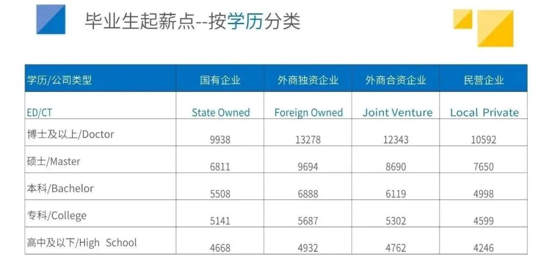 从具体情形看来,起薪点方面,博士及以上学历相较于硕士学历,高出的金额在3000元以上,硕士学历与本科学历相比较,普遍高出范围位于1300元至3000元之间,本科学历的起薪点又比专科及以下学历高出400元至1000元。不管企业是什么性质,是国企、私企还是外企,这样的薪酬梯度都稳定地存在着。
